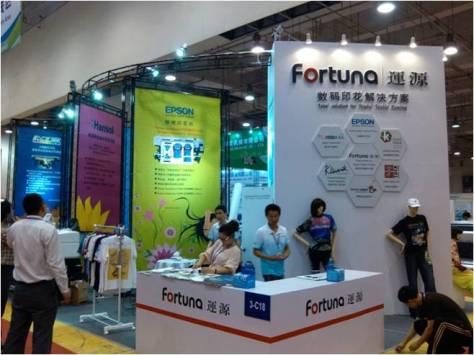 運源數碼在現場展出了包括國產艾捷特FB1800-TS34導帶式印花機、產自荷蘭的Klieverik熱轉印機、Epson S30680雙四色微噴寫真機和F7080數碼印花機等四款產品。
