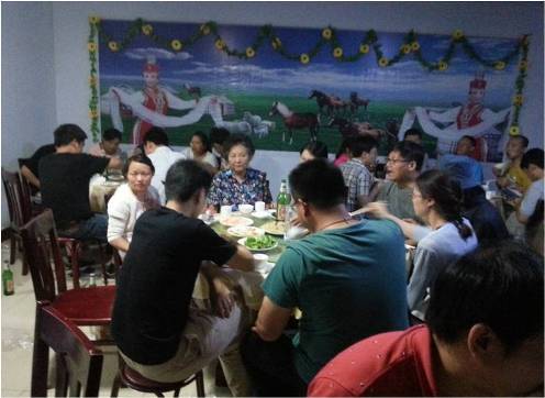 不知不覺已近黃昏,置身草原,感受微風習習,綠草飄搖,真是面對草原,浮想聯翩,心潮澎湃,心情那個爽啊。回到農莊,我們即將聚餐,等待那有蒙古風情的烤全羊。