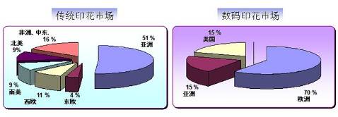 印花是非常大的傳統產業之一,全球每年的印花量超過400億平米,其中一半以上的生產在亞洲,而這一半之中,又有一大半分布在我國。相比于傳統印花,數碼印花以其小批量成本低廉、生產周期短、印花品質高、低能耗低排放而具備無以倫比的優勢,被認為是噴墨打印下一個潛在的主要應用領域。