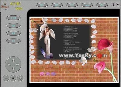 幻影200X系列是由勇敢科技工作室新近推出的一款優秀的數字照片制作工具,使用圖像邊緣柔化技術,可以把一幅或多幅圖像平滑的融合在一起。其可移花接木,讓美女與野獸共存,幻影2003是圖像合成的利器;也可以作為賀卡制作、婚紗攝影的工具。使用它可以為你的照片添加藝術像框和美麗的小飾品,只需要你輕輕移動鼠標,就可以做出一幅大師級藝術效果的新圖像。