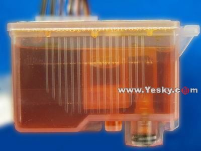 這是目前無海綿連續供墨系統最理想的走線方式,設計為一體,接頭在墨盒表面蓋子的下面,美觀大方