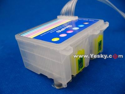 這是與前兩代墨盒相比有很大變革的一代墨盒,完全拋棄了*大塊海綿吸收墨水的辦法,只保留了一個圓點海綿的過濾作用,并采用了進氣孔與墨水壓力平衡結構,增加了單向閥,取消了原先進氣孔的封口膜,代之以側面壓點通氣閥。這些改進完全消除了前兩代墨盒的所有弊端,大大提高了墨盒使用的穩定性、方便性和墨水的適應性,EPSON在2003年推出的部分高端機型中都采用了這種墨盒。機型如:C80/CJ100/950/2100/CX5100等。